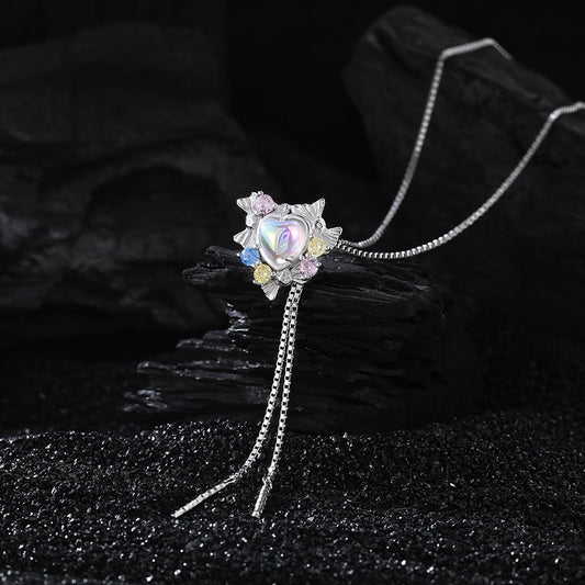 Moonstone Heart-Shaped Pull-Chain Necklace